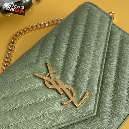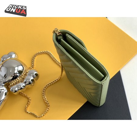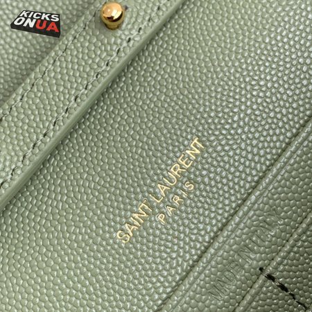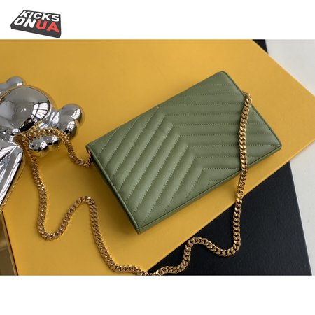 Saint Laurent Monogram Embossed Light Sage Leather Chain Wallet