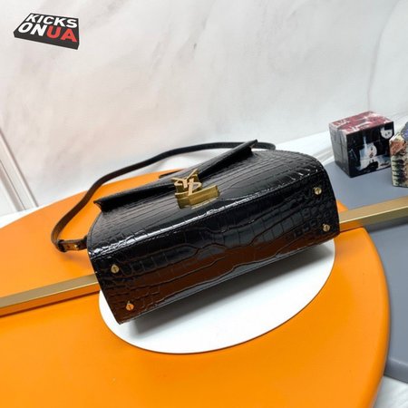 Cassandra Mini Top Handle Bag In Crocodile-Embossed Shiny Leather