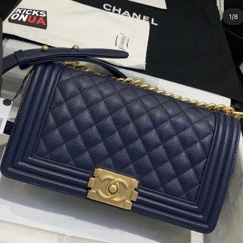 Chanel Boy Navy Blue Caviar Bag