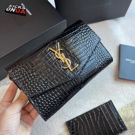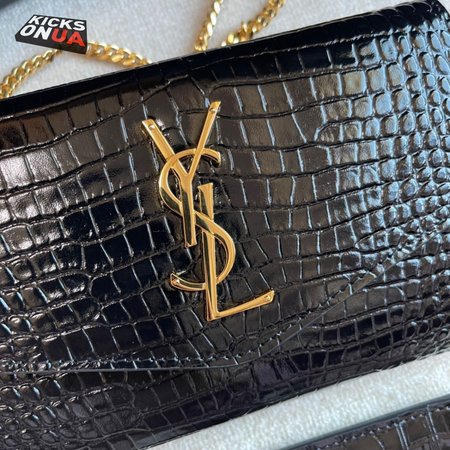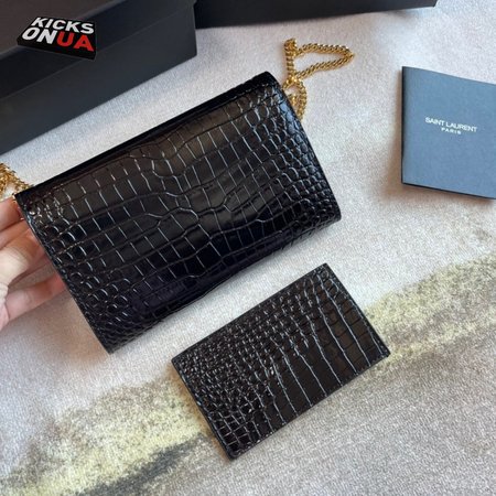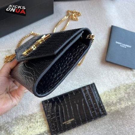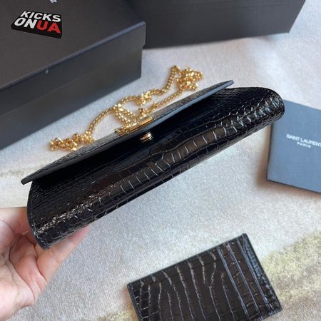 Saint Laurent Cassandre Phone Holder With Strap In Shiny Crocodile-Embossed Leather