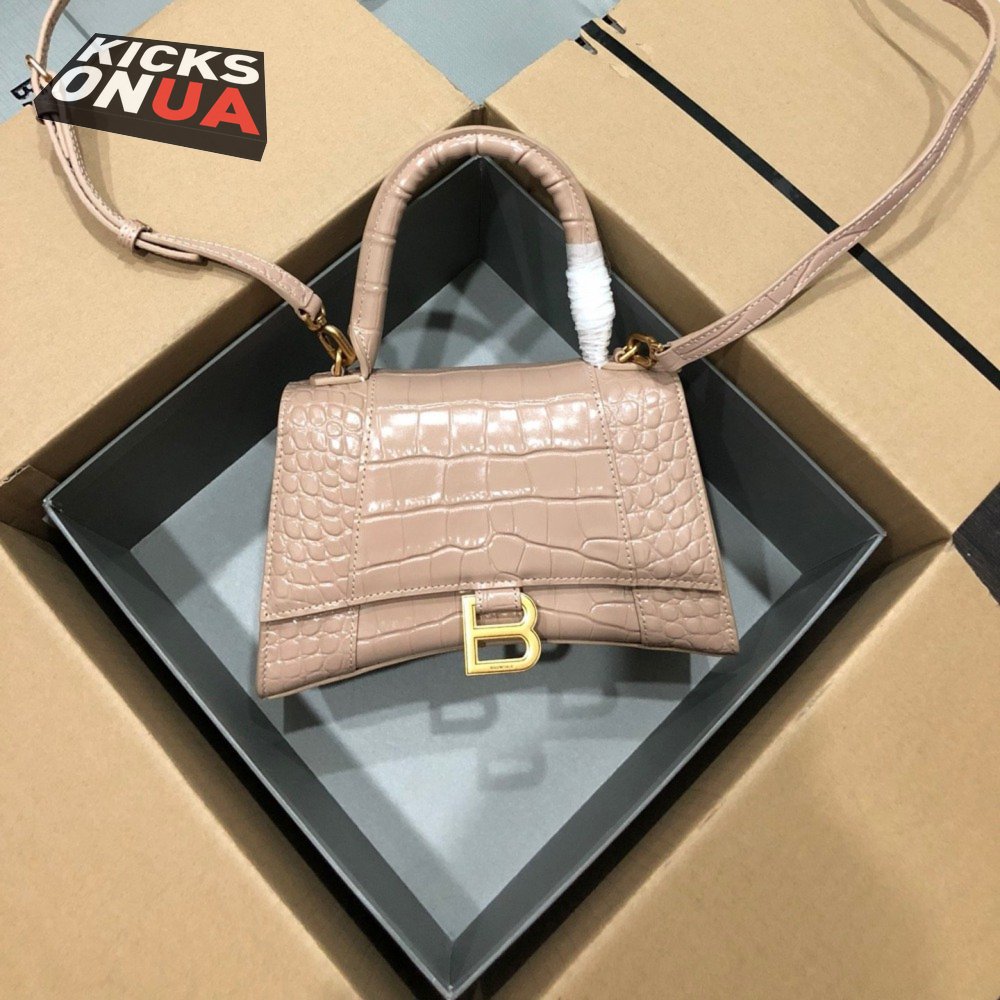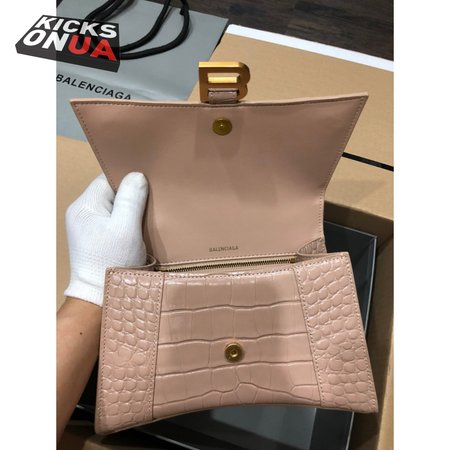 Balenciaga Hourglass Small Handbag Crocodile Embossed In Nude 6310