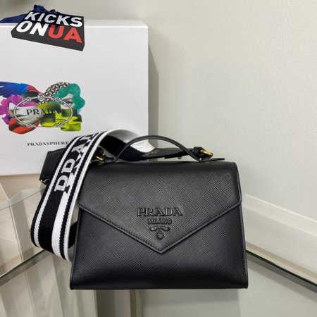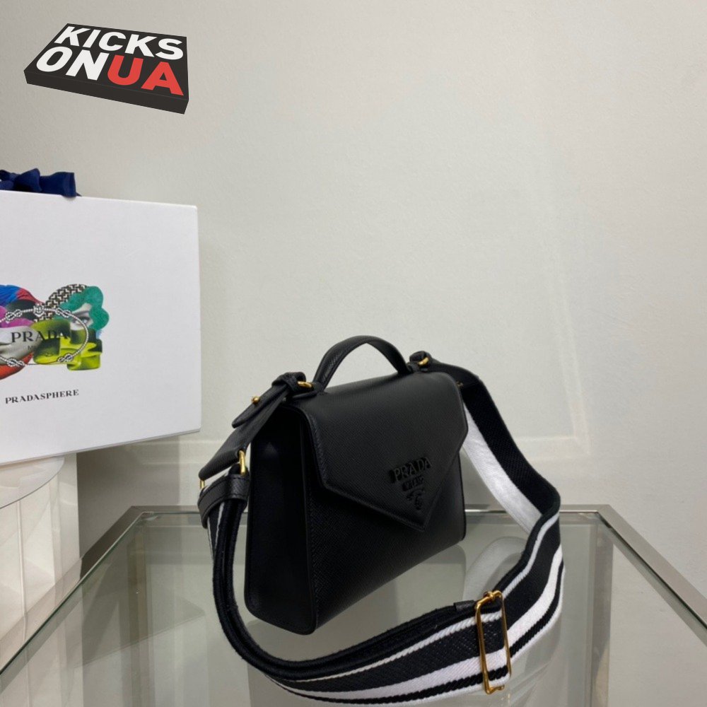 Prada Monochrome Saffiano And Leather Bag Black 1BD317