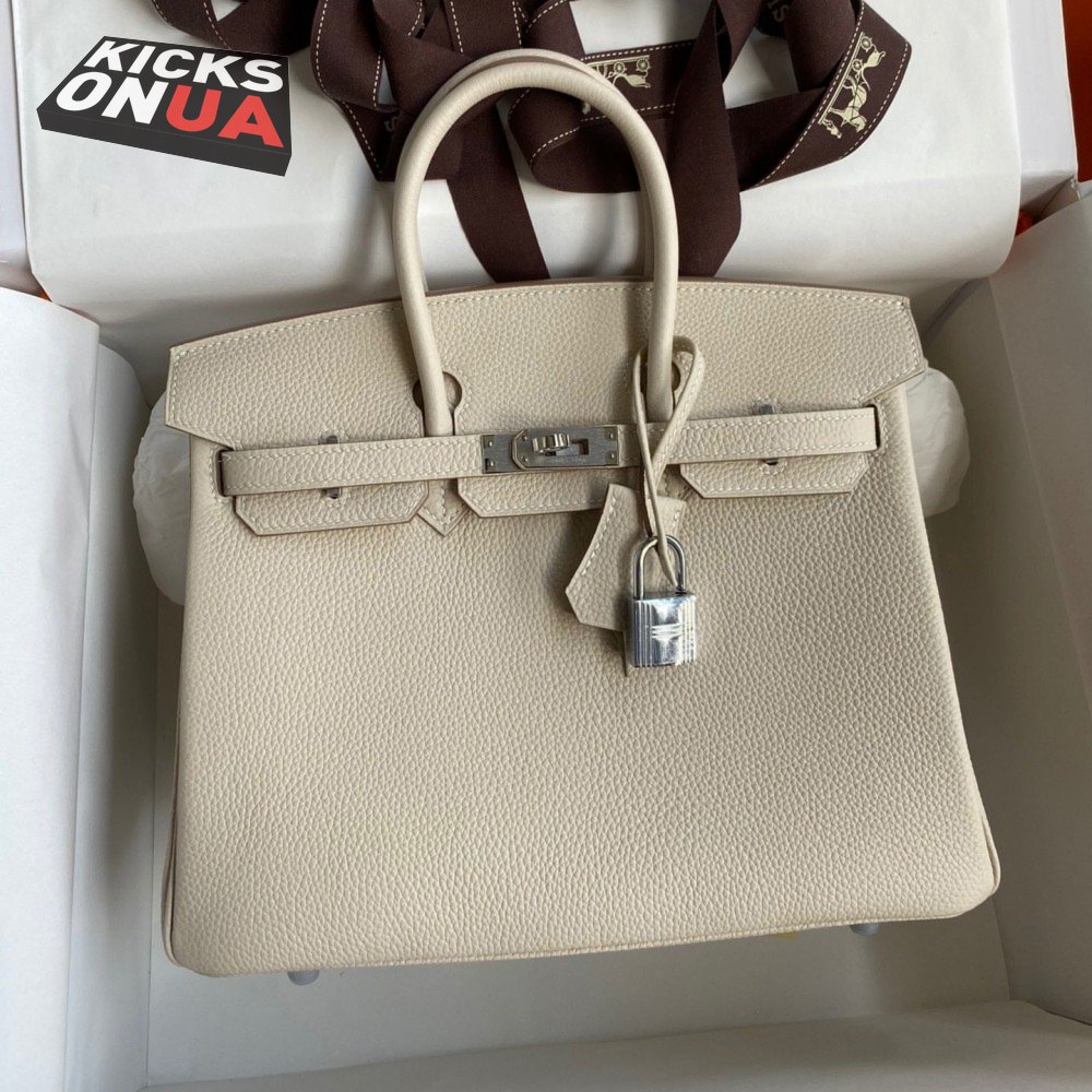 Hermes Craie Togo Birkin 25 Palladium Hardware