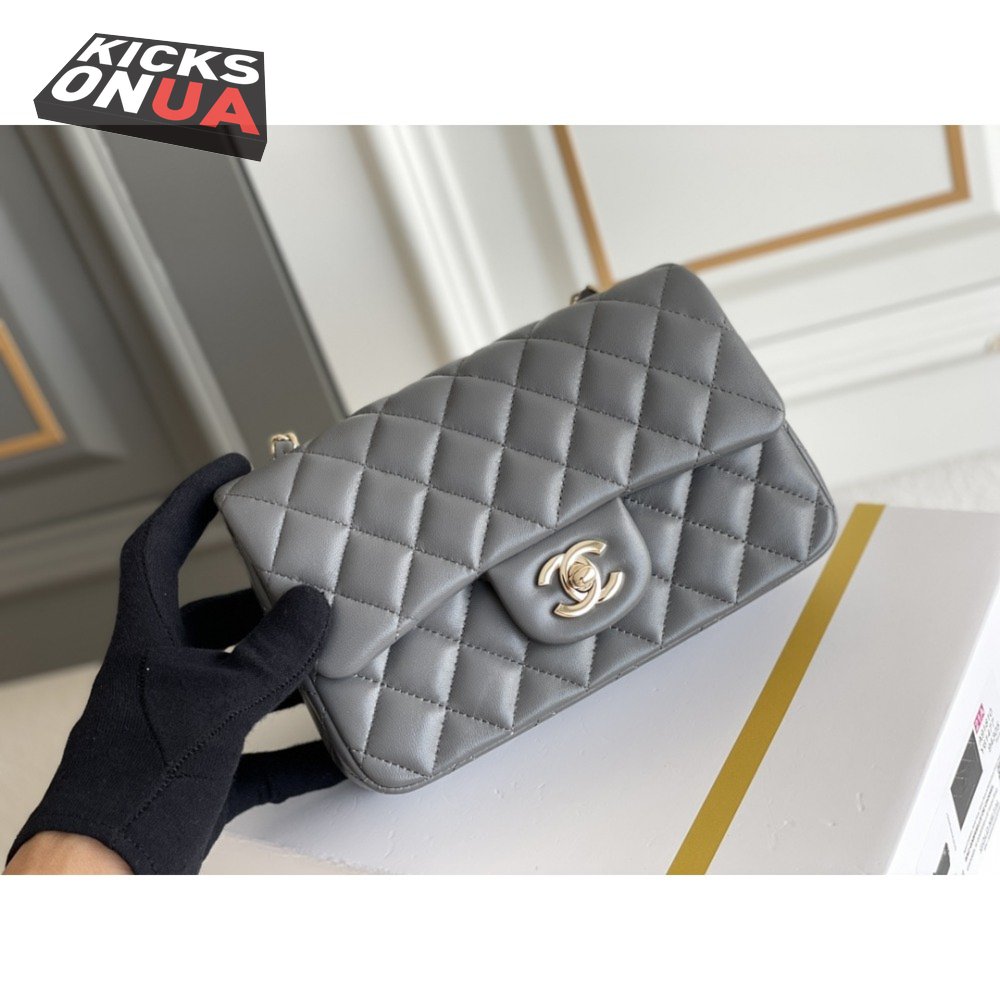 Chanel Quilted Mini Rectangular Flap Bag Grey