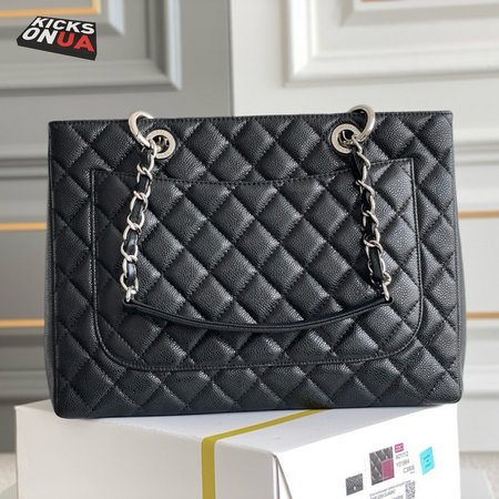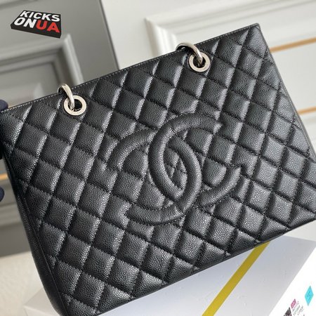 Chanel GST Black Quilted Caviar Leather Silver-Tone Hardware