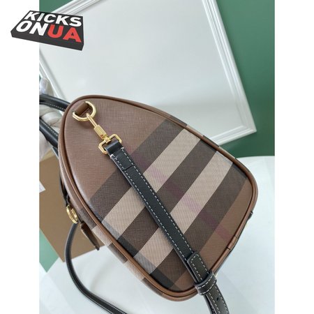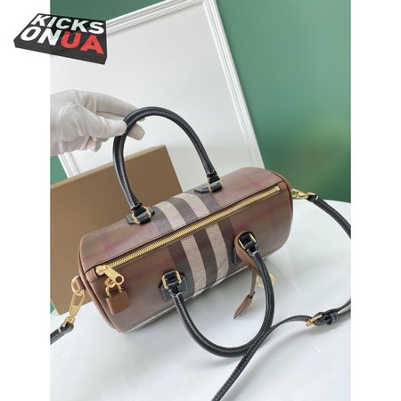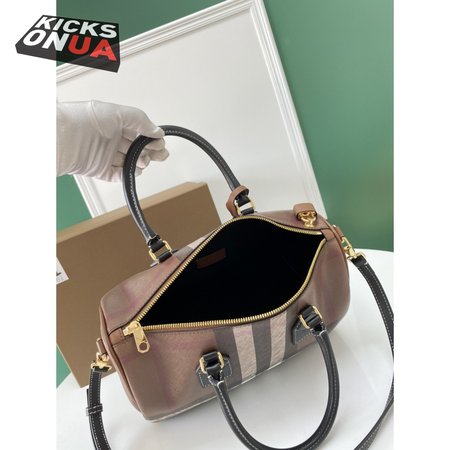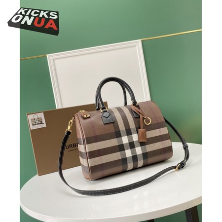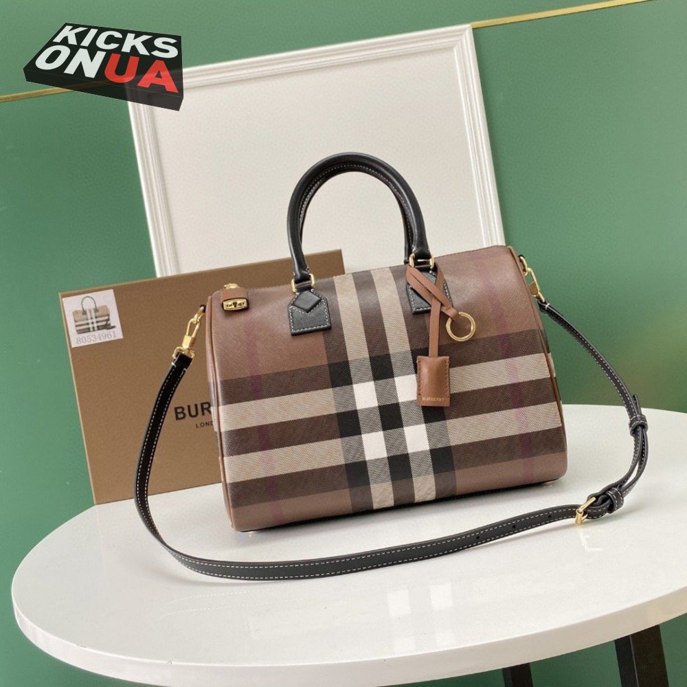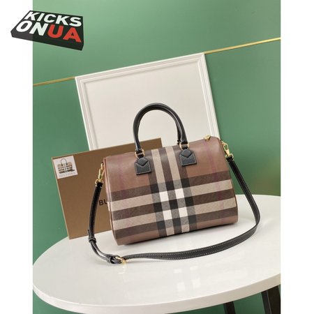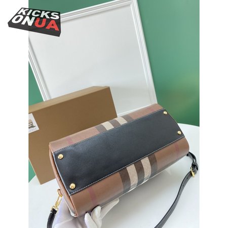 Burberry Check And Leather Medium Bowling Bag Dark Birch Brown 80523481