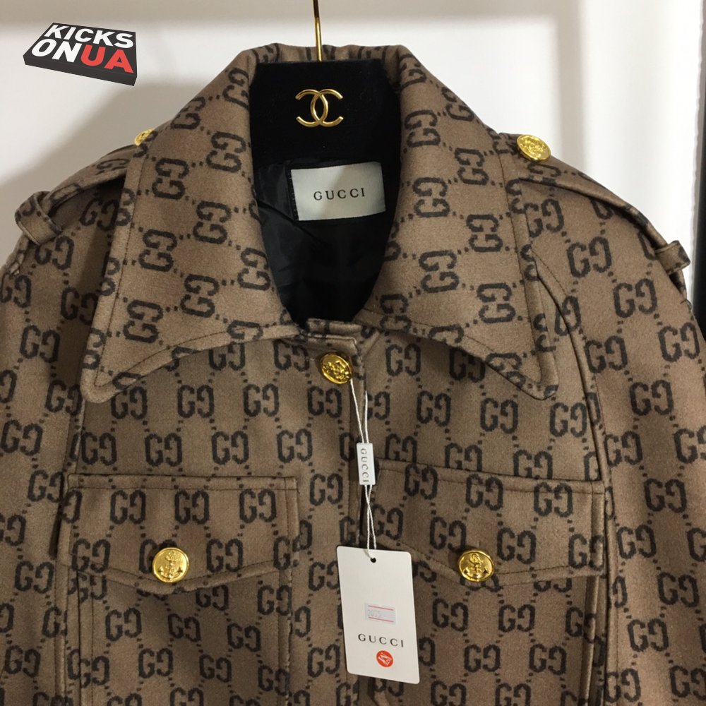 Gucci Double G Letter Print Woolen Cape Coat