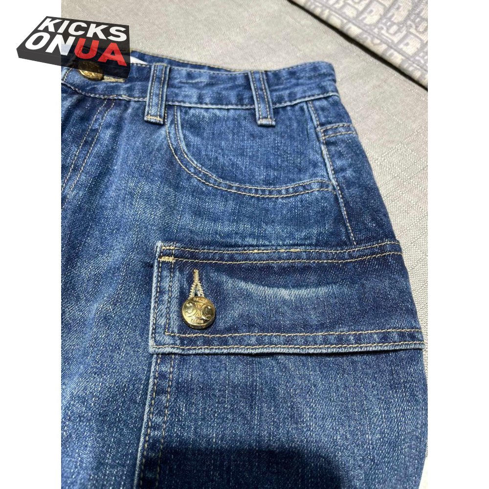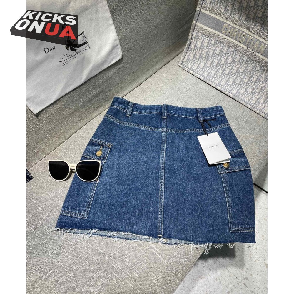 Celine Cargo Mini Skirt In Dark Union Wash Denim S-L