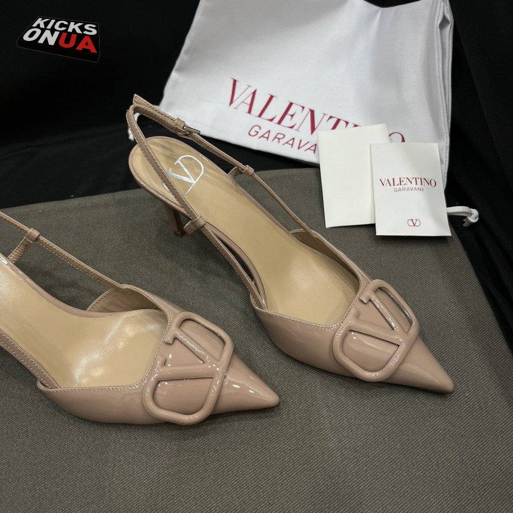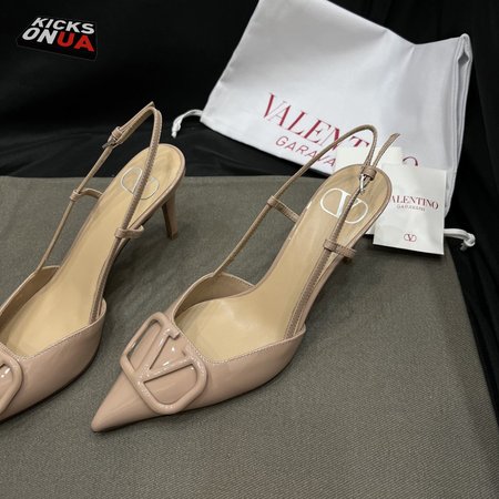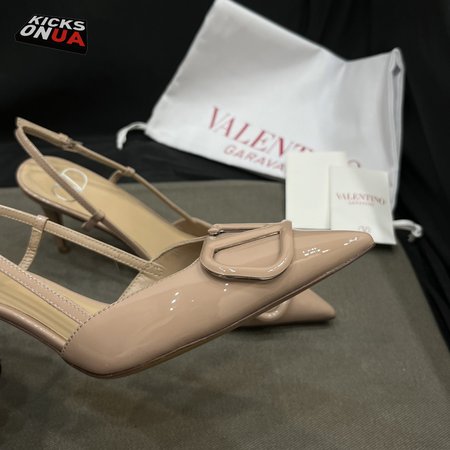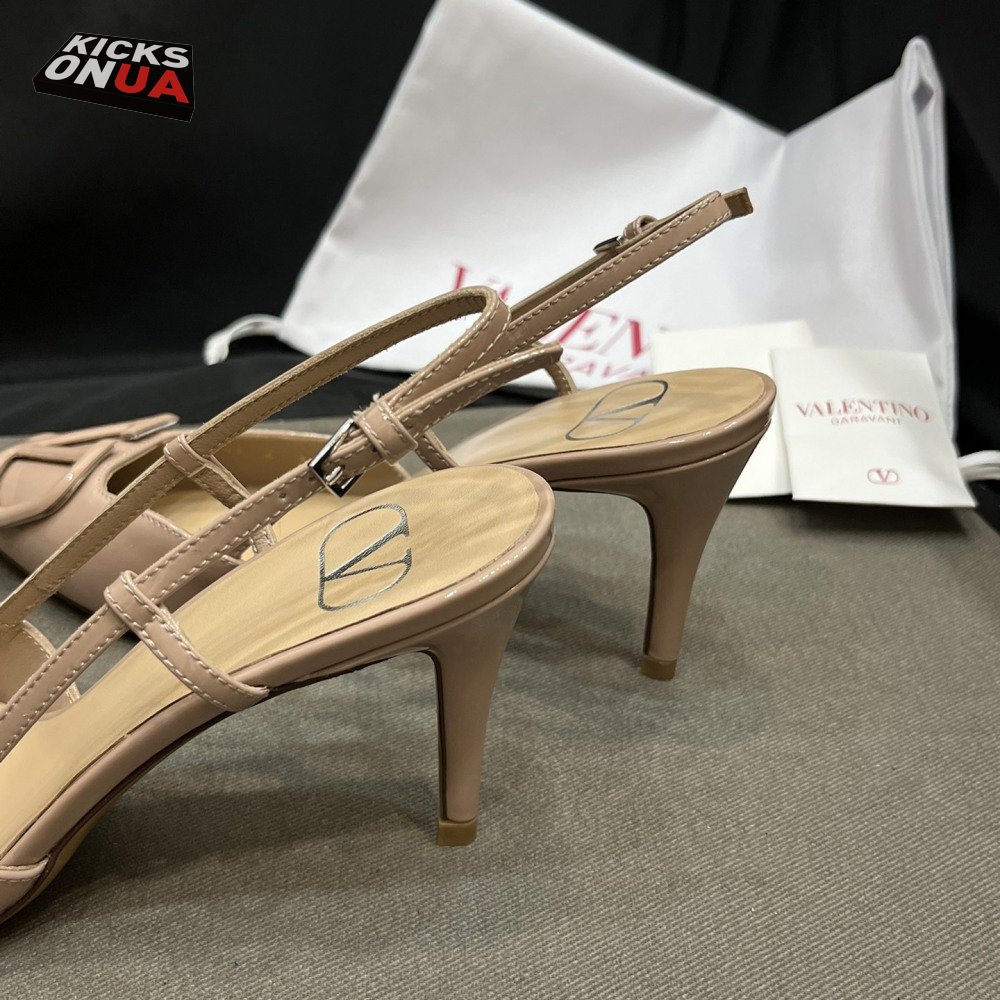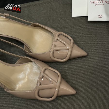 Valentino Beige Patent Leather VLOGO Slingback Pumps
