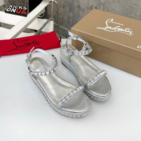 Christian Louboutin Pyraclou 110 Glitter Wedge Sandals In Silver
