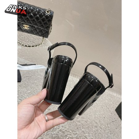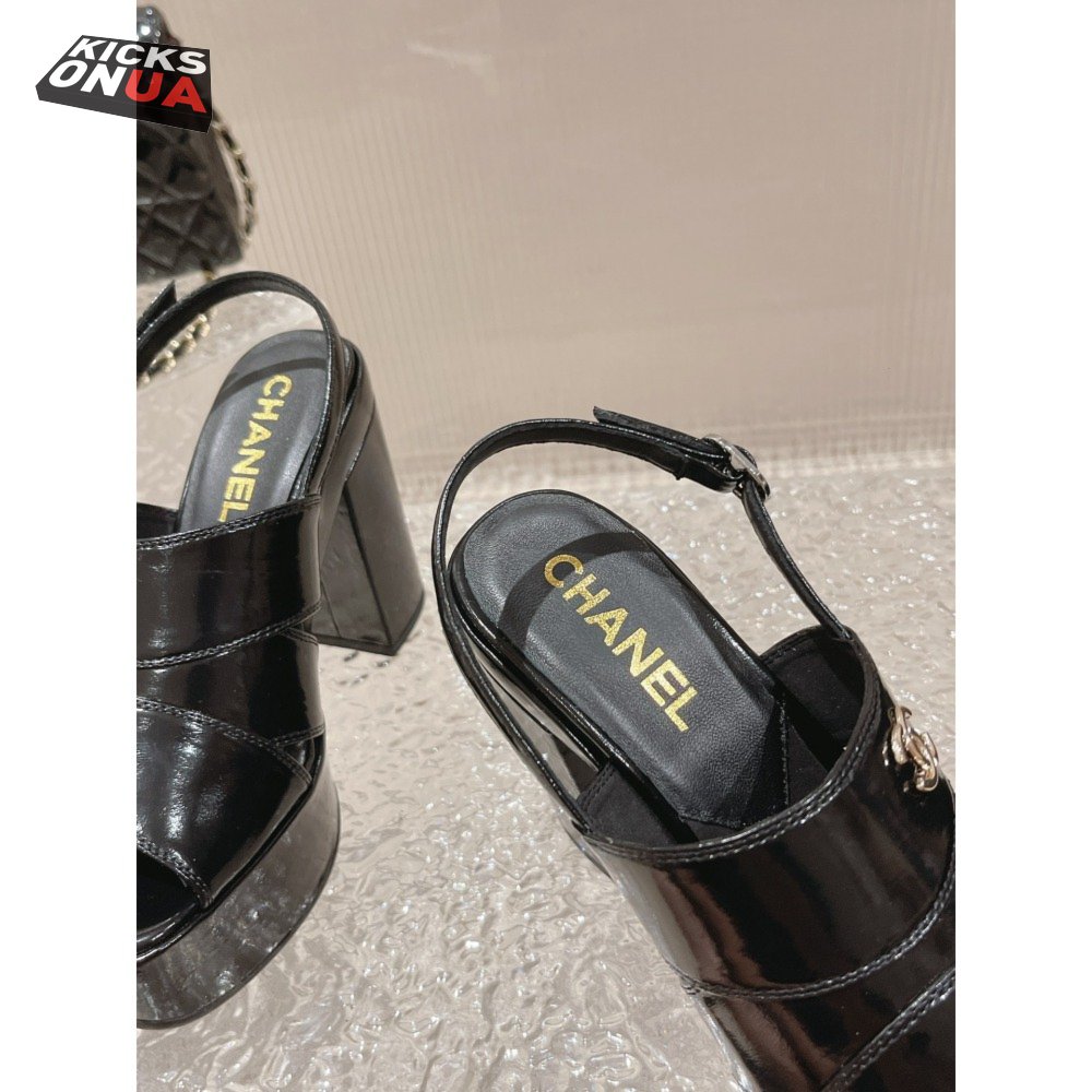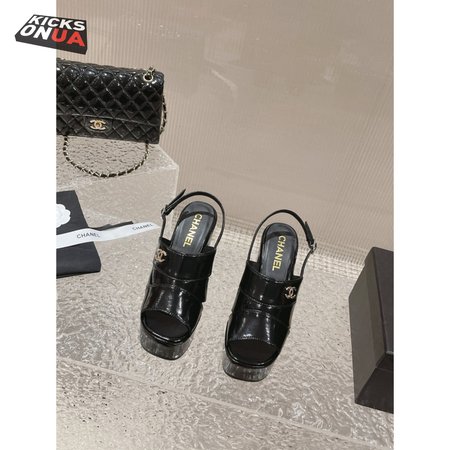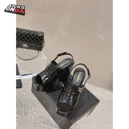 Chanel Sandal Patent Crumpled Lambskin Black