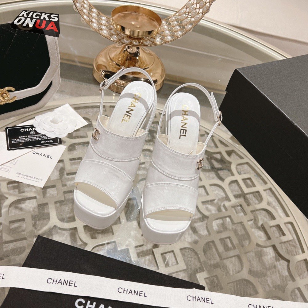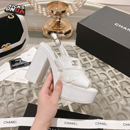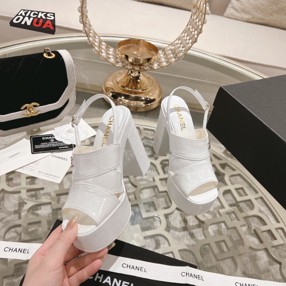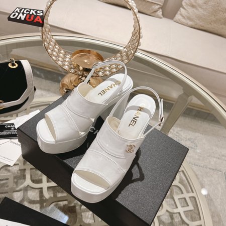 Chanel Sandal Patent Crumpled Lambskin White