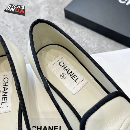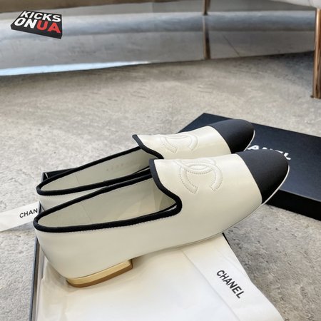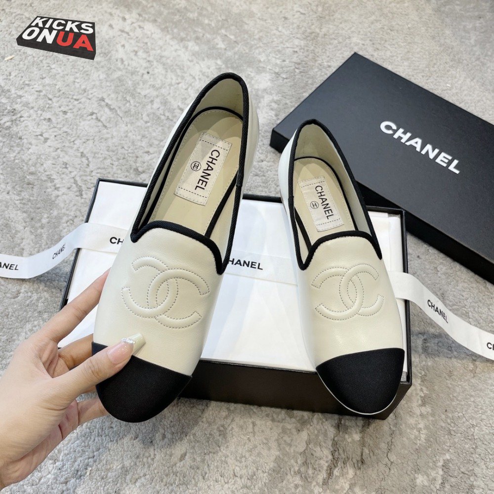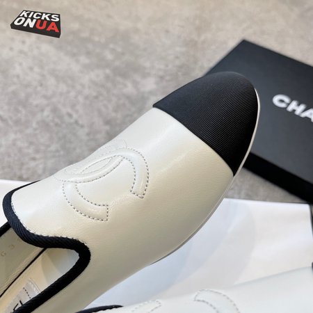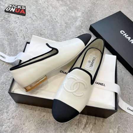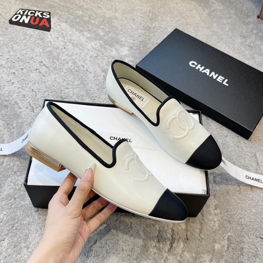Chanel CC Loafers White Black Lambskin