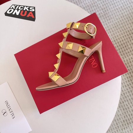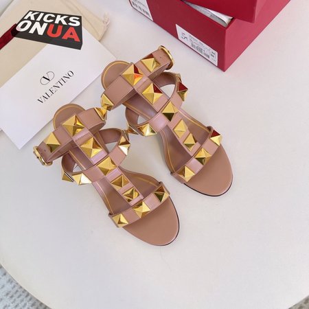 Valentino Roman Stud Calfskin Sandal 100mm Rose Cannelle 35-39