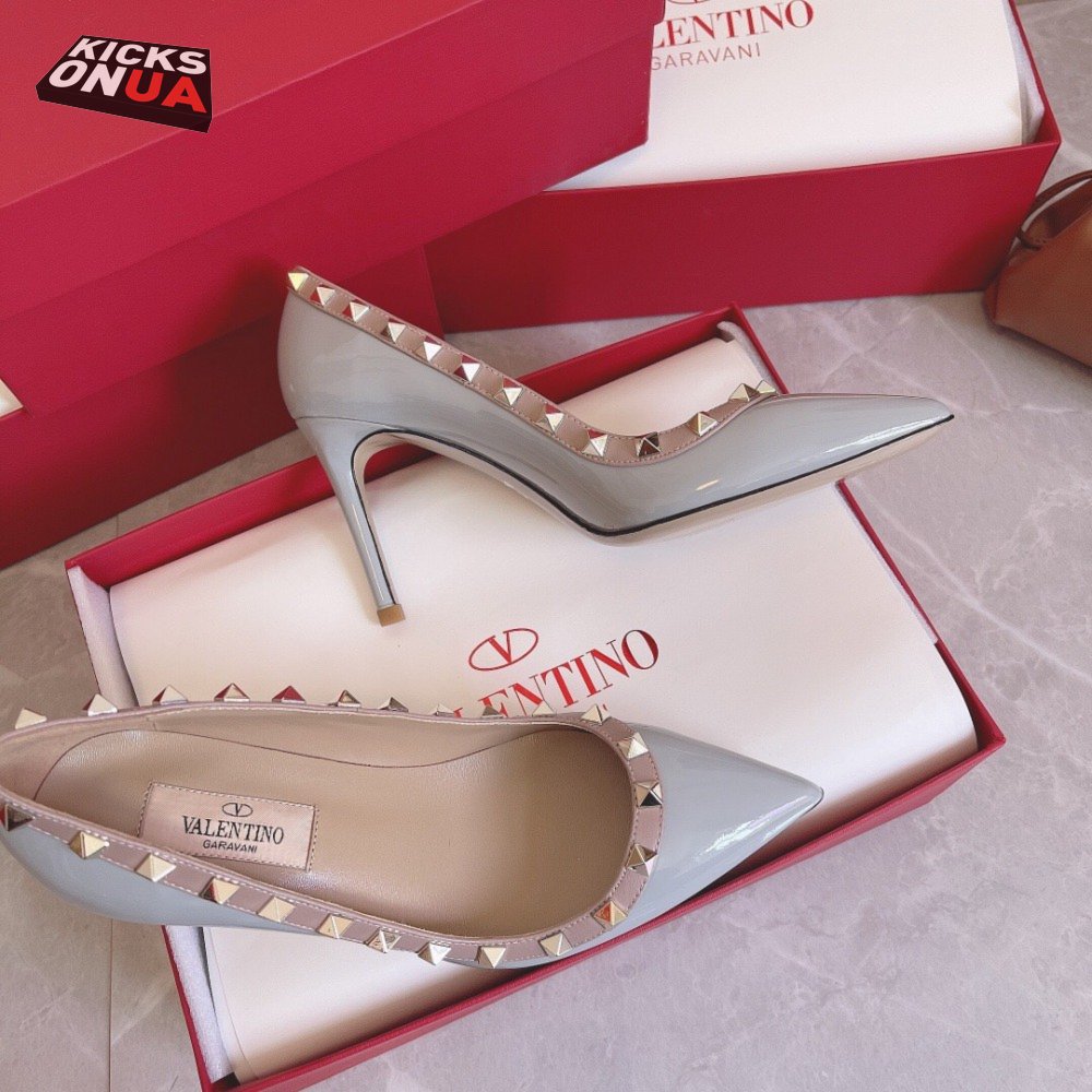 Valentino Garavani Grey & Pink Valentino Garavani Rockstud Heels