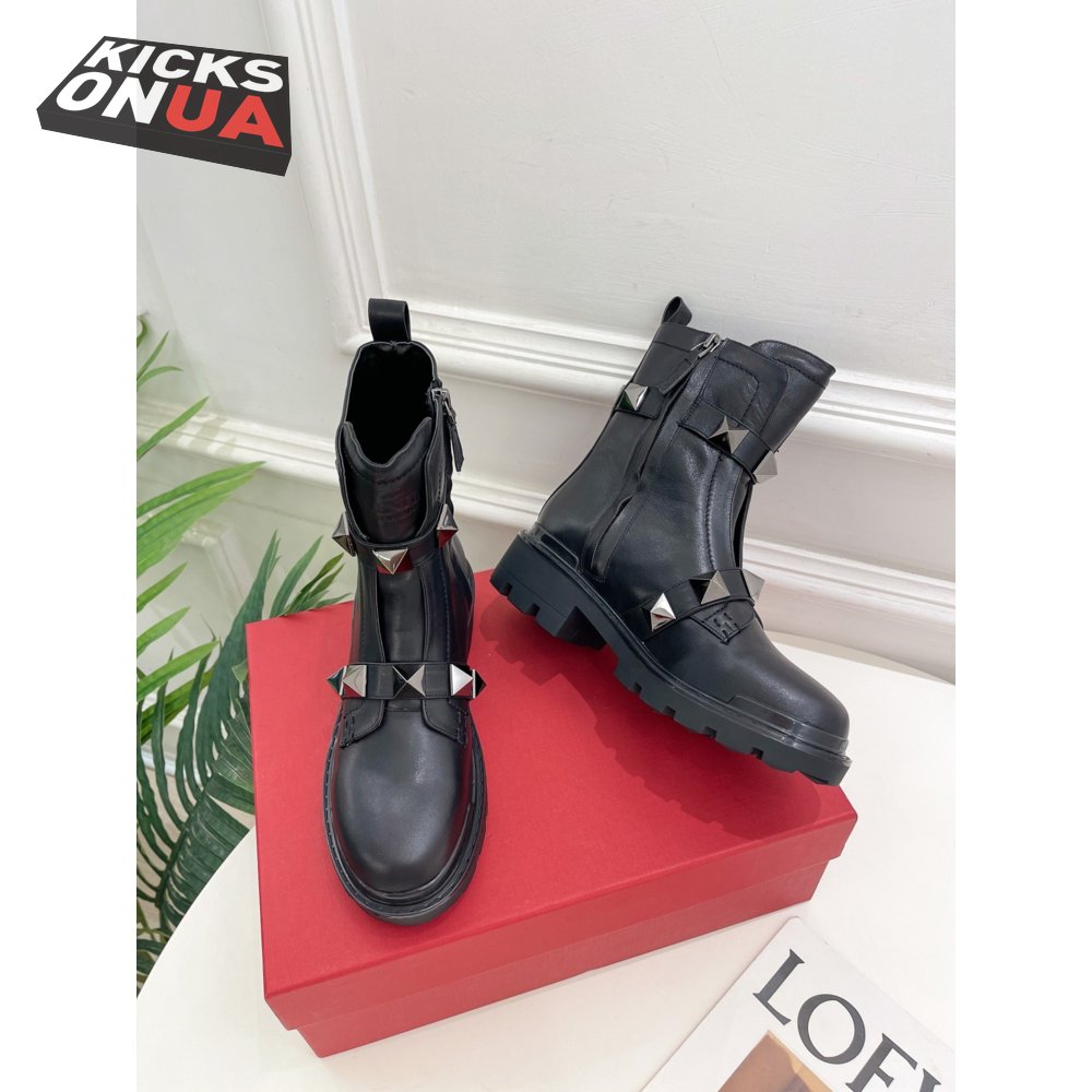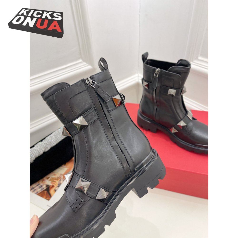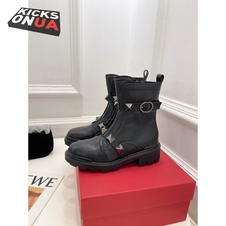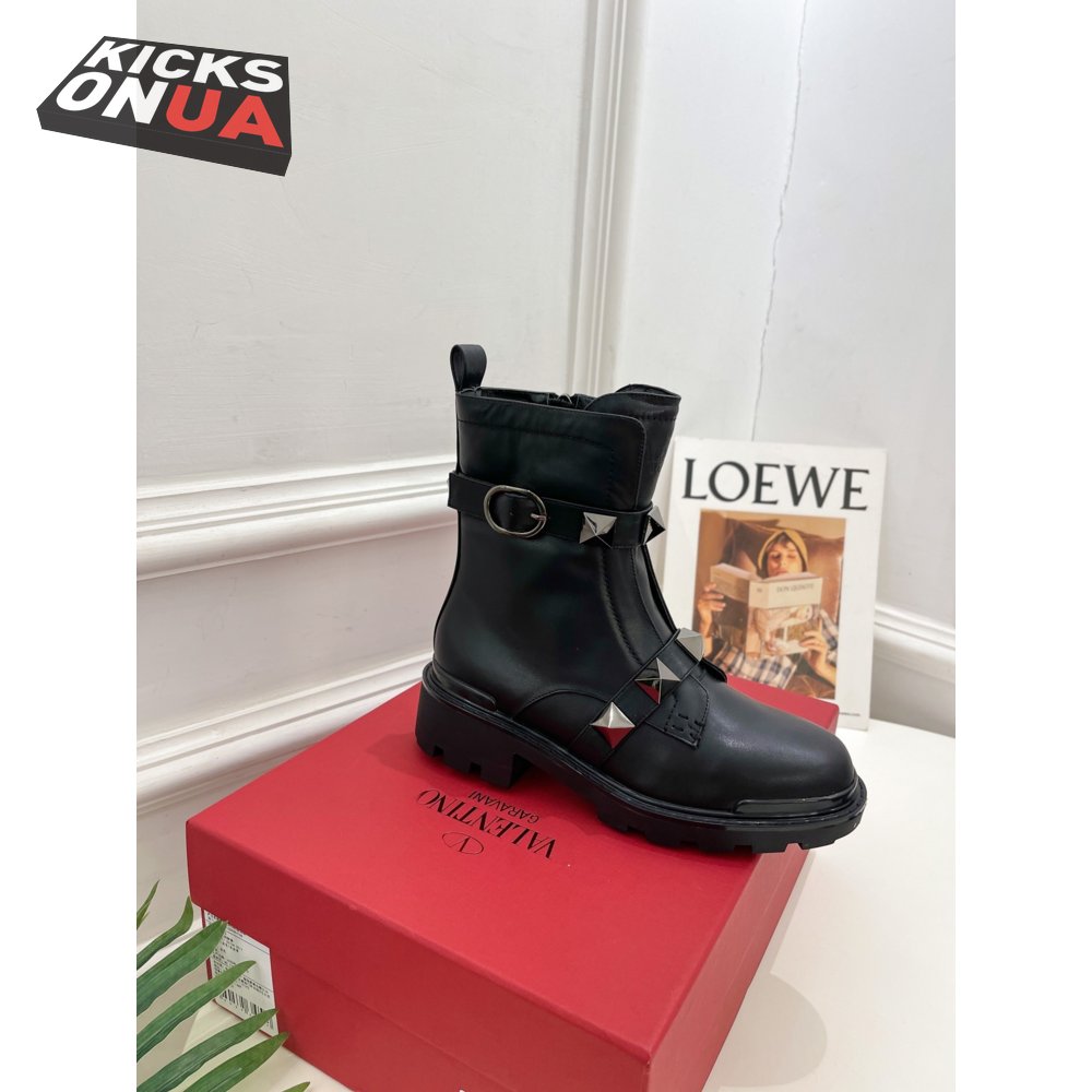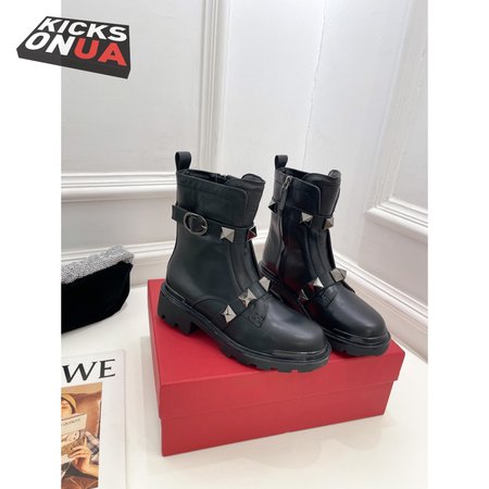 Valentino Roman Stud Calfskin Combat Boot With Tonal Studs 40MM 35-39
