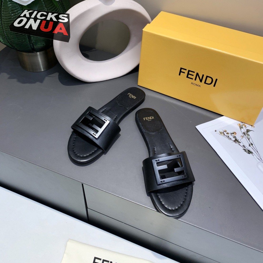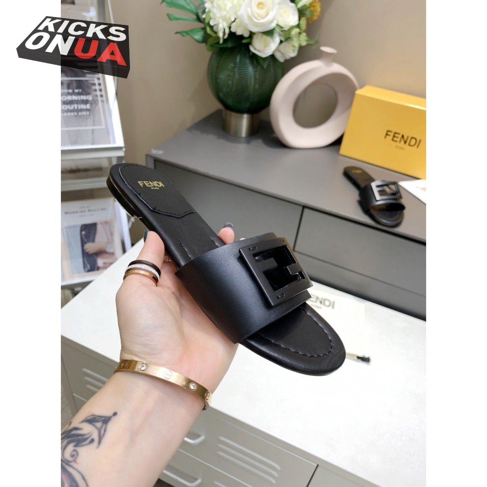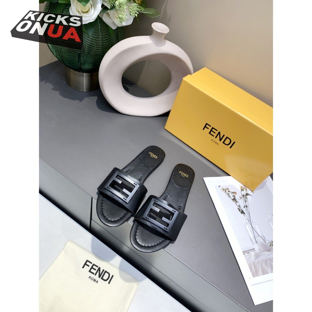 Fendi Baguette Black Leather Slides 35-40